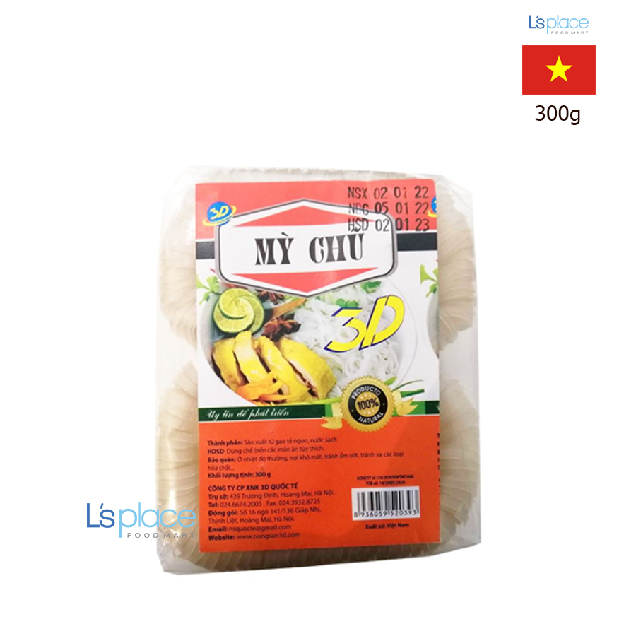 Mì Chũ 3D gói 300g – 3D Chu Rice Noodles 300g