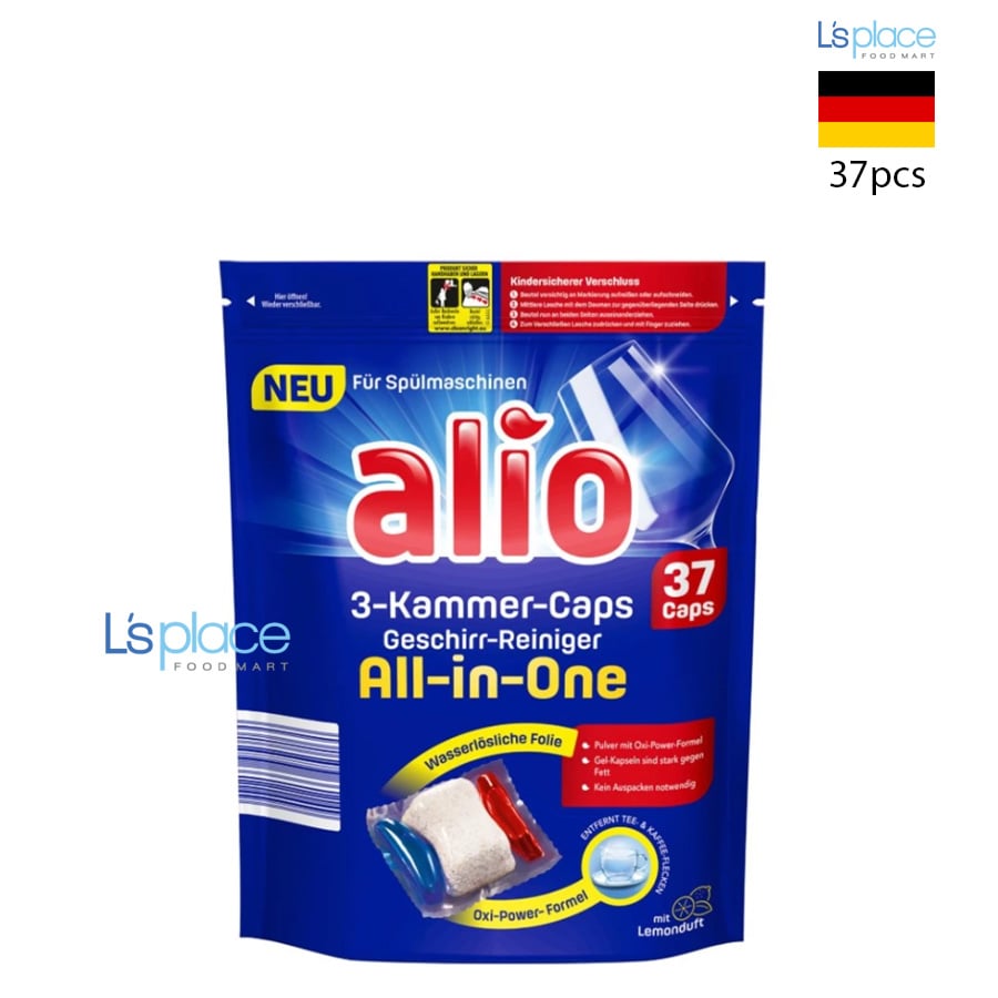 Viên rửa chén Alio All-in-One 3 ngăn là giải pháp rửa chén bát đa năng, hiện đại cho gia đình sử dụng máy rửa chén. Mỗi viên được thiết kế với 3 khoang chuyên biệt gồm bột Oxi-Power và hai ngăn gel đỏ – xanh, giúp loại bỏ hiệu quả cặn thức ăn khô cứng, dầu mỡ, vết trà và cà phê, đồng thời mang lại độ sáng bóng cho chén đĩa và ly tách.