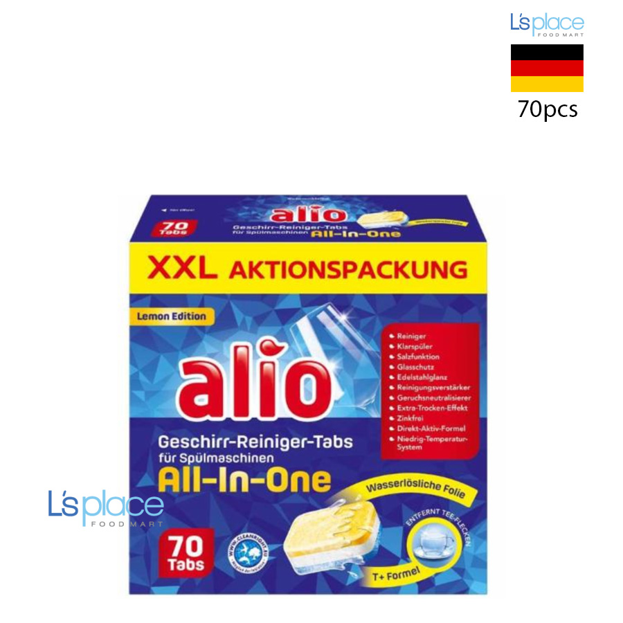 Viên rửa chén Alio All In One XXL Pack đến từ thương hiệu Dalli-Werke nổi tiếng của Đức là giải pháp làm sạch toàn diện và tiện lợi cho máy rửa chén của bạn. Sản phẩm tích hợp 7 tính năng ưu việt trong một viên nén duy nhất: chất tẩy rửa mạnh mẽ, chất trợ xả, muối rửa chén, chất bảo vệ độ sáng bóng cho kính và thép không gỉ, chất làm khô và khử mùi hiệu quả. Đặc biệt, với công thức mới bổ sung "giấy bạc tự tan", viên rửa chén Alio không chỉ loại bỏ hoàn hảo các vết bẩn cứng đầu như vết trà, cà phê mà còn mang lại vẻ sáng bóng như mới cho bộ đồ ăn, đồng thời ngăn ngừa các vết ố nước cứng và khử sạch mùi hôi trong máy.
