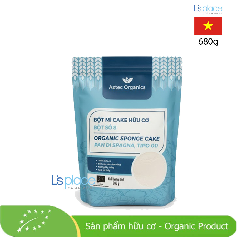 Aztec Bột mì cake hữu cơ (Bột số 8) là dòng bột mì 100% hữu cơ, không tẩy trắng, phù hợp cho các loại bánh bông lan, sponge cake, cake mềm xốp theo phong cách châu Âu. Bột có độ mịn cao, khả năng tạo kết cấu bánh nhẹ, nở đều, giữ được hương vị tự nhiên và màu bánh đẹp. Sản phẩm thích hợp cho người làm bánh tại nhà lẫn tiệm bánh chuyên nghiệp, đặc biệt với những ai ưu tiên nguyên liệu hữu cơ an toàn.