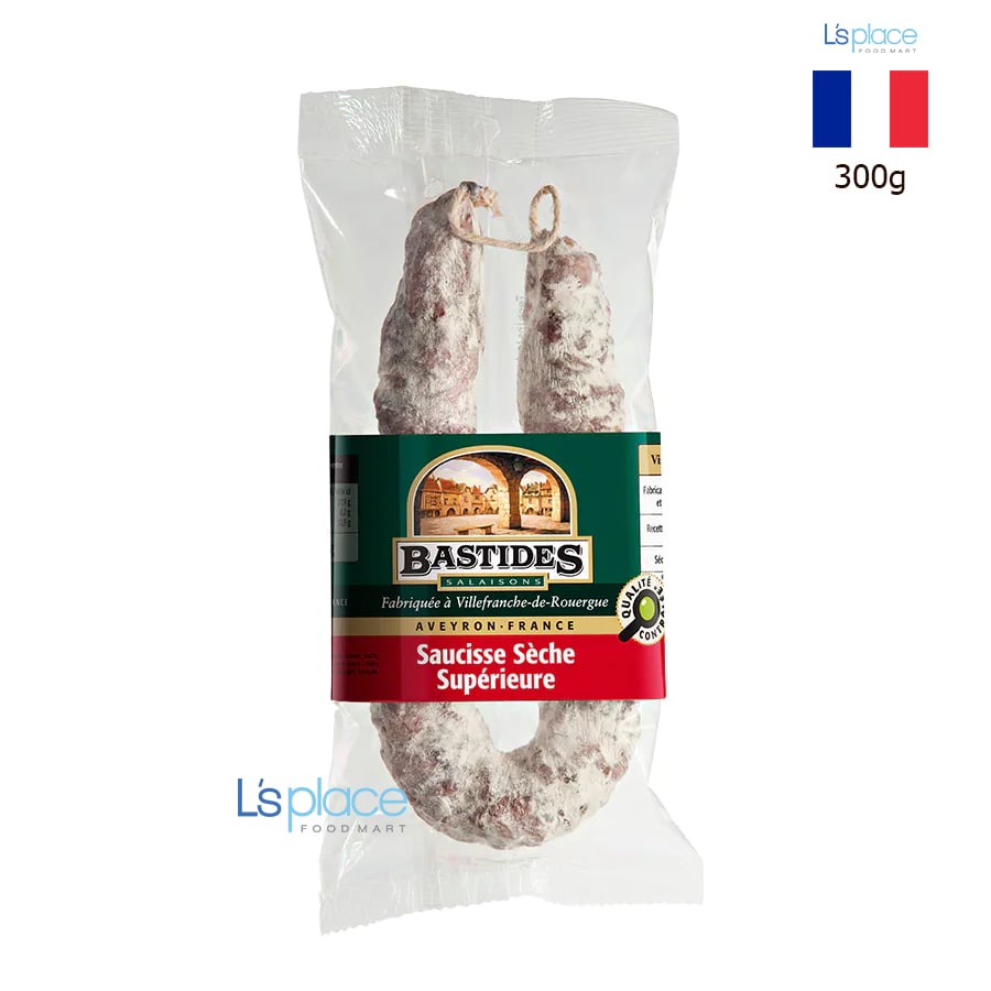 Mô tả sản phẩm: Xúc xích khô Bastides được chế biến theo phương pháp truyền thống của Pháp, sử dụng thịt heo chọn lọc, ướp muối và gia vị tự nhiên, sau đó được làm khô trong thời gian dài để phát triển hương vị đậm đà. Với lớp vỏ khô tự nhiên, xúc xích mang lại kết cấu săn chắc, mùi thơm đặc trưng và vị mặn hài hòa.