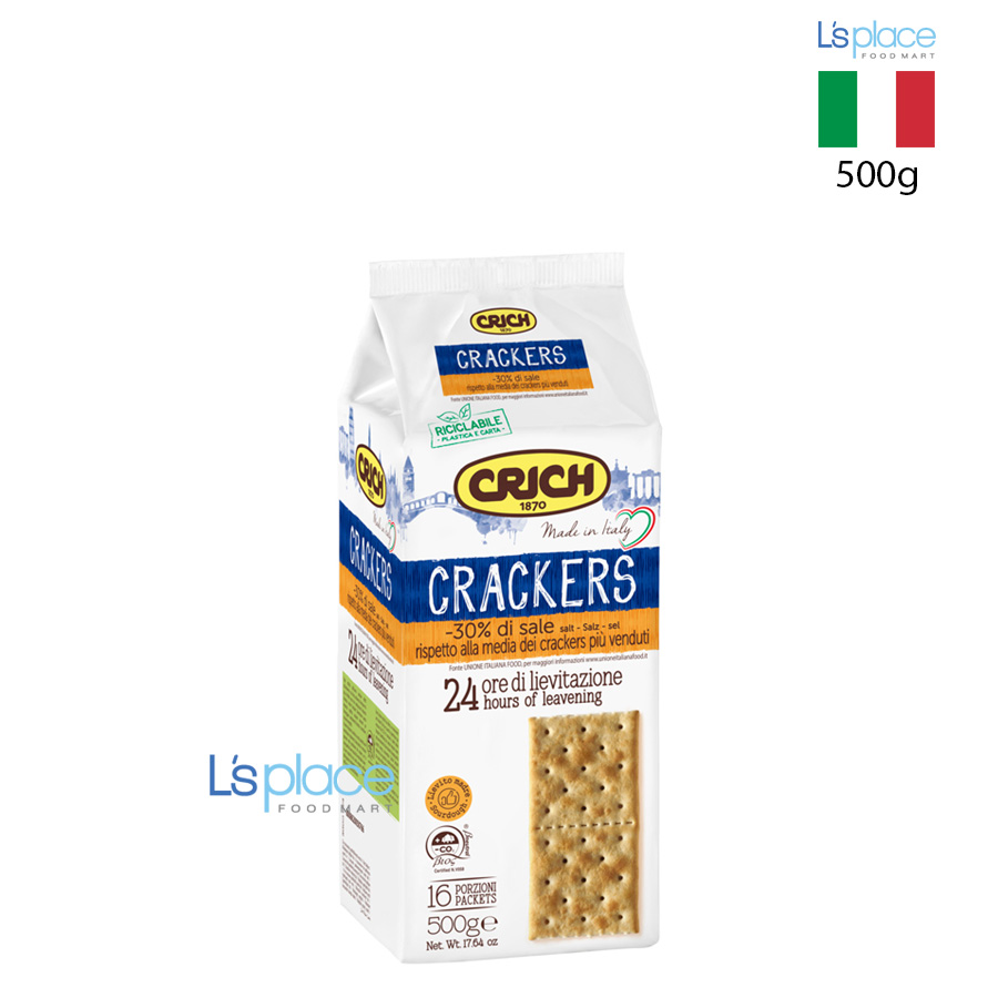 Crich Crackers 30% Less Salted là bánh cracker truyền thống của Ý với công thức giảm 30% lượng muối, mang đến lựa chọn lành mạnh hơn mà vẫn giữ trọn hương vị thơm ngon đặc trưng. Bánh được nướng giòn vàng, có vị thanh nhẹ, dễ ăn và phù hợp cho mọi lứa tuổi. Sản phẩm không chứa dầu cọ, phẩm màu hay chất bảo quản, thích hợp dùng trong bữa sáng, bữa phụ hoặc kết hợp với phô mai, salad và các món khai vị.