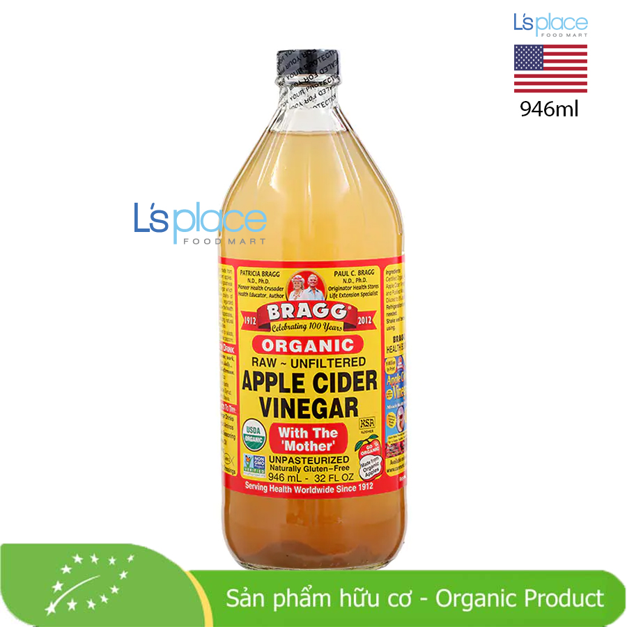 - Bragg Live Food Products, LLC là một thương hiệu nổi tiếng của Mỹ, được thành lập từ năm 1912 bởi Paul C. Bragg và sau này được phát triển bởi con gái ông, Patricia Bragg. Triết lý của thương hiệu là "Live Stronger, Longer" (Sống khỏe hơn, lâu hơn) thông qua các sản phẩm thực phẩm hữu cơ, tự nhiên. Bragg cam kết các sản phẩm của mình là USDA Organic (Hữu cơ được chứng nhận bởi Bộ Nông nghiệp Hoa Kỳ), Non-GMO Project Verified (Không biến đổi gen), Gluten-Free (Không chứa Gluten) và Kosher.Thành phần: