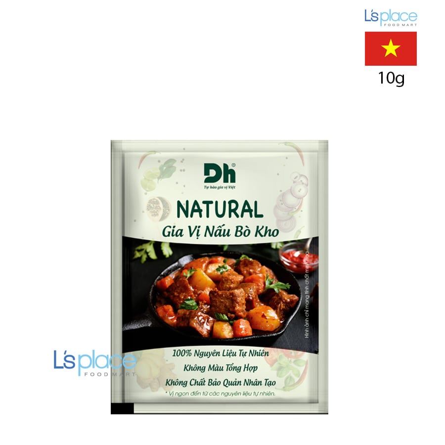 Gia vị nấu Bò Kho DHfood được phối trộn từ các nguyên liệu tự nhiên như hạt điều màu, quế, đại hồi, thảo quả, tiểu hồi, ớt bột và đinh hương, mang đến hương thơm nồng nàn, vị đậm đà và màu sắc hấp dẫn cho món ăn. Sản phẩm giúp người nội trợ dễ dàng chế biến món bò kho chuẩn vị Việt Nam ngay tại nhà.