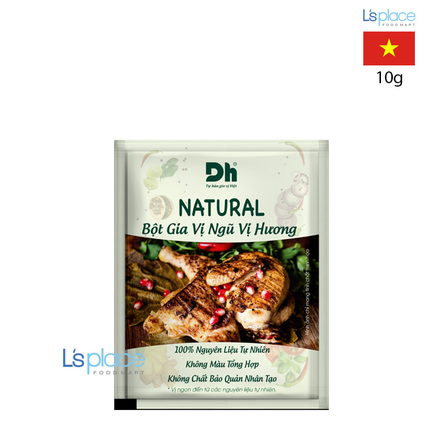 Gia Vị Ngũ Vị Hương Natural DH Foods được phối trộn từ các nguyên liệu tự nhiên như đại hồi, đinh hương, hạt ngò, quế, tiêu, tiểu hồi và ớt bột. Hương vị đậm đà đặc trưng của ngũ vị hương giúp làm dậy mùi thơm hấp dẫn và mang đến vị ngon hài hòa cho món ăn.