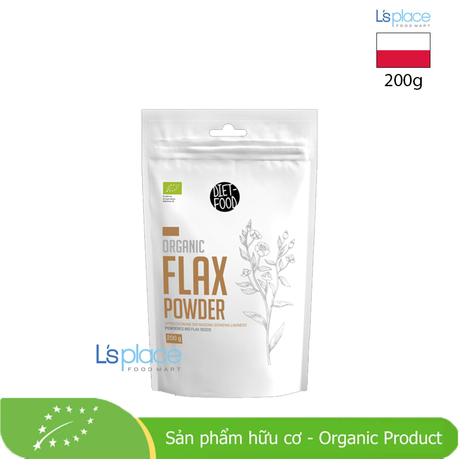 Diet Food Bột hạt lanh hữu cơ là bột hạt lanh hữu cơ, được nghiền mịn từ 100% hạt lanh tự nhiên trồng theo phương pháp hữu cơ. Sản phẩm giàu omega-3, chất xơ hòa tan và lignan – hợp chất thực vật có lợi cho sức khỏe tim mạch, tiêu hóa và cân bằng nội tiết tố. Bột hạt lanh còn hỗ trợ kiểm soát cân nặng, duy trì làn da khỏe mạnh và bổ sung nguồn dinh dưỡng thiết yếu cho chế độ ăn chay hoặc ăn kiêng.