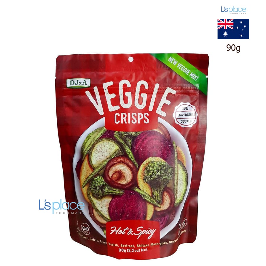 - DJ&A là một thương hiệu nổi tiếng của Úc, chuyên sản xuất các loại snack (đồ ăn vặt) từ rau củ quả sấy khô, được biết đến với công nghệ sấy tiên tiến, giúp giữ lại hương vị tự nhiên và độ giòn của rau củ. Các sản phẩm của DJ&A thường được quảng cáo là tốt cho sức khỏe hơn các loại snack thông thường.Thành phần: