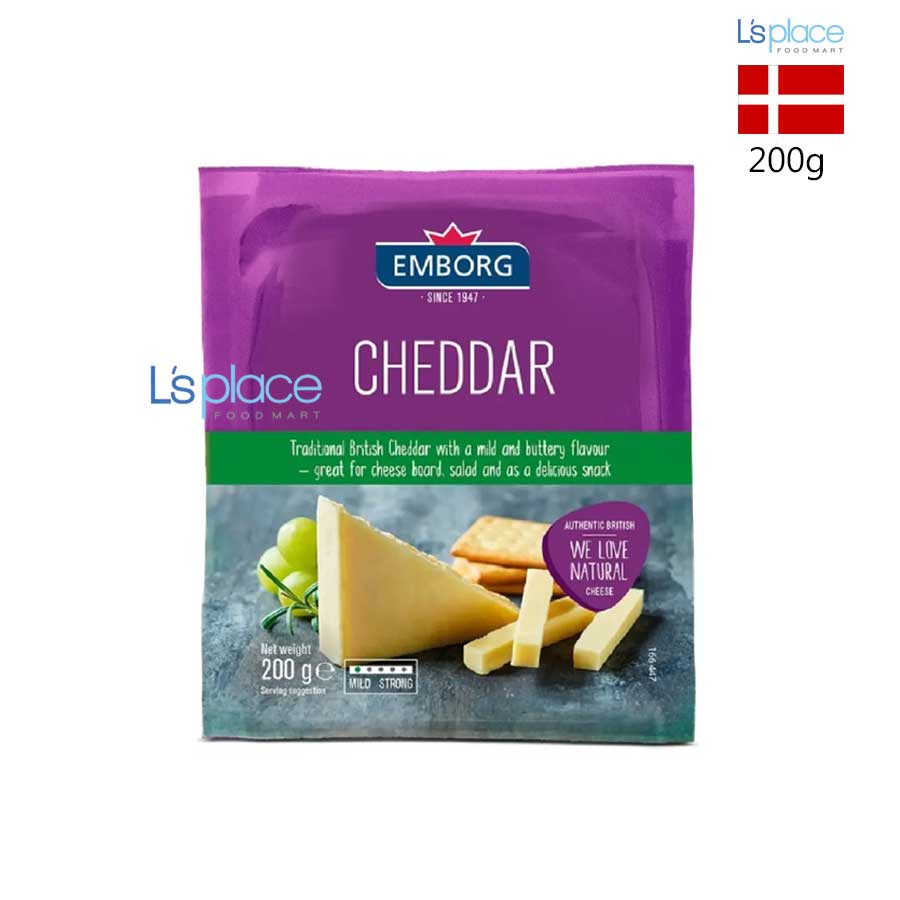 Phomai cheddar trắng nguyên khối Emborg – Cheddar White Cheese Block 200g