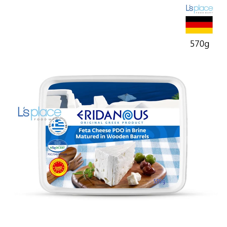 Eridanous Feta PDO được ngâm trong nước muối và ủ chín tự nhiên trong thùng gỗ truyền thống, mang đến hương vị đậm đà, cấu trúc chắc hơn và hương thơm phức hợp so với phomai feta thông thường. Đây là loại phomai trắng đặc trưng vùng Địa Trung Hải, được bảo hộ chỉ dẫn địa lý (PDO), đảm bảo chất lượng và nguồn gốc chính thống.Ưu điểm nổi bật: