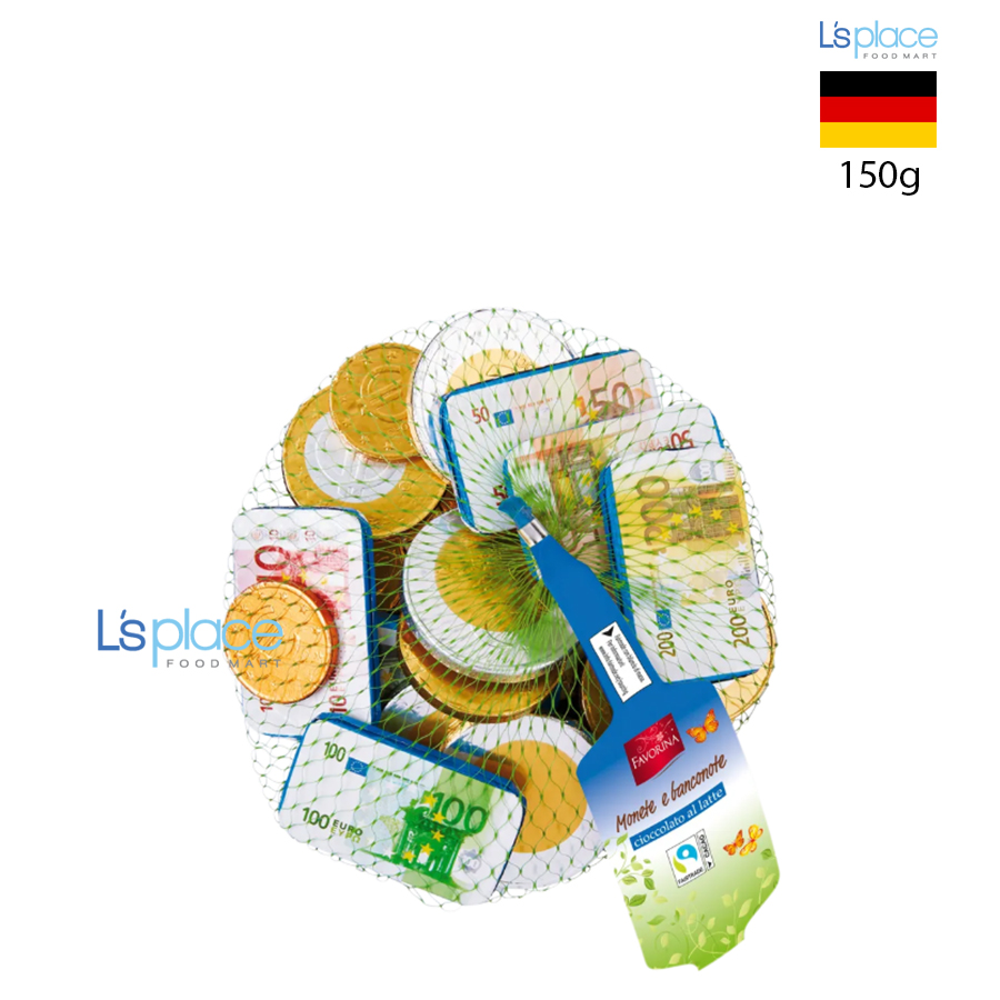 Favorina Schokogeld là socola hình đồng tiền và tiền giấy độc đáo, mang đến trải nghiệm thưởng thức thú vị và vui nhộn. Sản phẩm có hương vị socola thơm béo, phù hợp làm quà tặng dịp lễ, sinh nhật hoặc dùng để trang trí cho tiệc, bánh ngọt và các dịp đặc biệt khác.