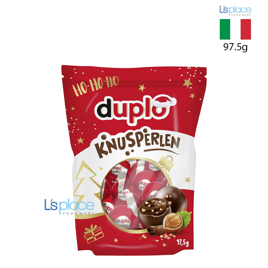 - Duplo là một dòng sản phẩm bánh kẹo của tập đoàn Ferrero (Ferrero Rocher, Kinder, Nutella...). Ferrero là tập đoàn bánh kẹo nổi tiếng toàn cầu, có xuất xứ từ Ý (Italia). Sản phẩm Duplo được biết đến là sự kết hợp giữa bánh xốp giòn, kem hạt dẻ (hạt phỉ) và lớp socola sữa phủ bên ngoài. Duplo Knusperlen là một phiên bản đặc biệt, thường là sản phẩm theo mùa (ví dụ: Giáng sinh), với nhân bên trong được làm thành các viên sô cô la sữa nhỏ chứa hạt phỉ, kem cacao và vụn gạo giòn (crunchy pearls/knusperlen).