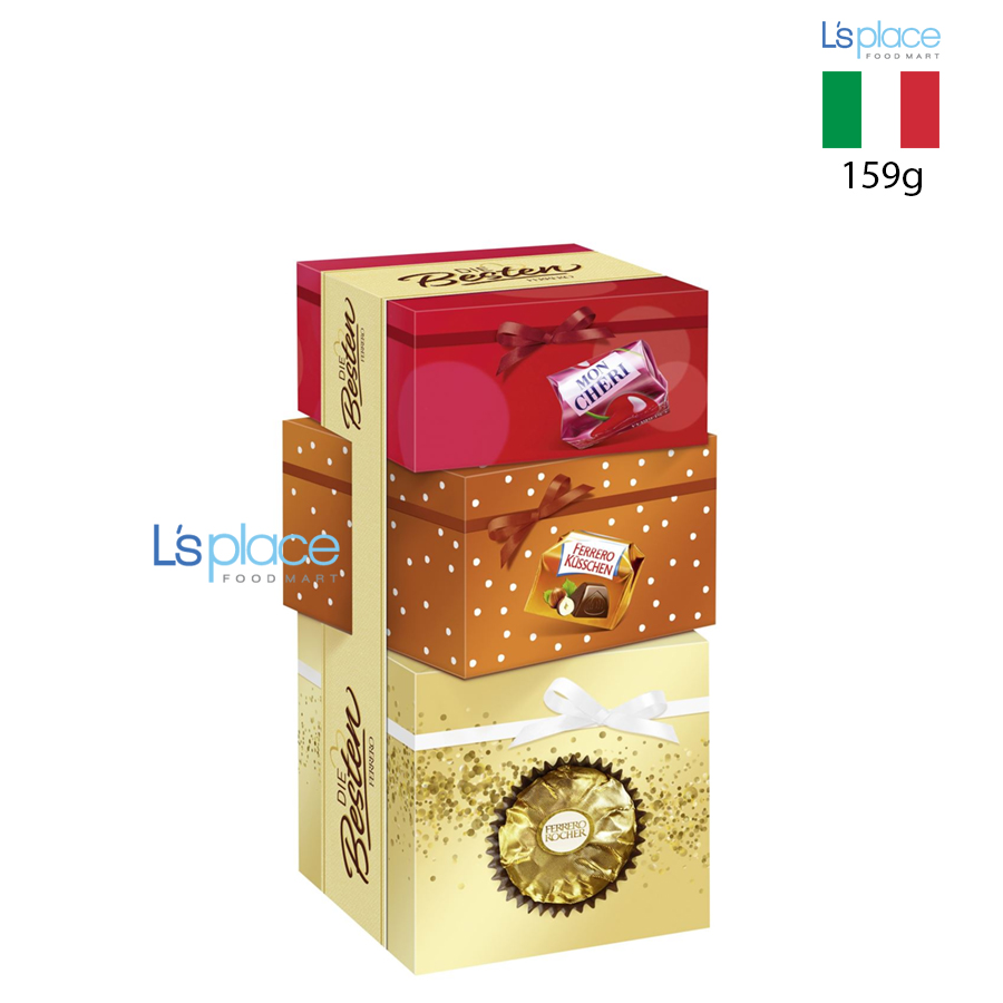 Die Besten von Ferrero Geschenkeberg 159g là hộp quà socola đặc biệt dành cho mùa lễ hội, quy tụ những dòng kẹo nổi tiếng và được yêu thích nhất của Ferrero như Ferrero Rocher, Ferrero Küsschen và Ferrero Mon Chéri. Mỗi viên kẹo mang hương vị béo ngậy, tinh tế cùng chất lượng cao cấp, kết hợp với thiết kế hộp sang trọng, rất phù hợp làm quà tặng dịp lễ, Tết hoặc để tự thưởng thức trong những khoảnh khắc đặc biệt.