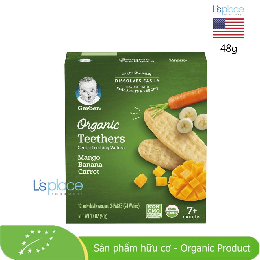 Bánh Gerber Organic Teething Wafers Mango, Banana & Carrot