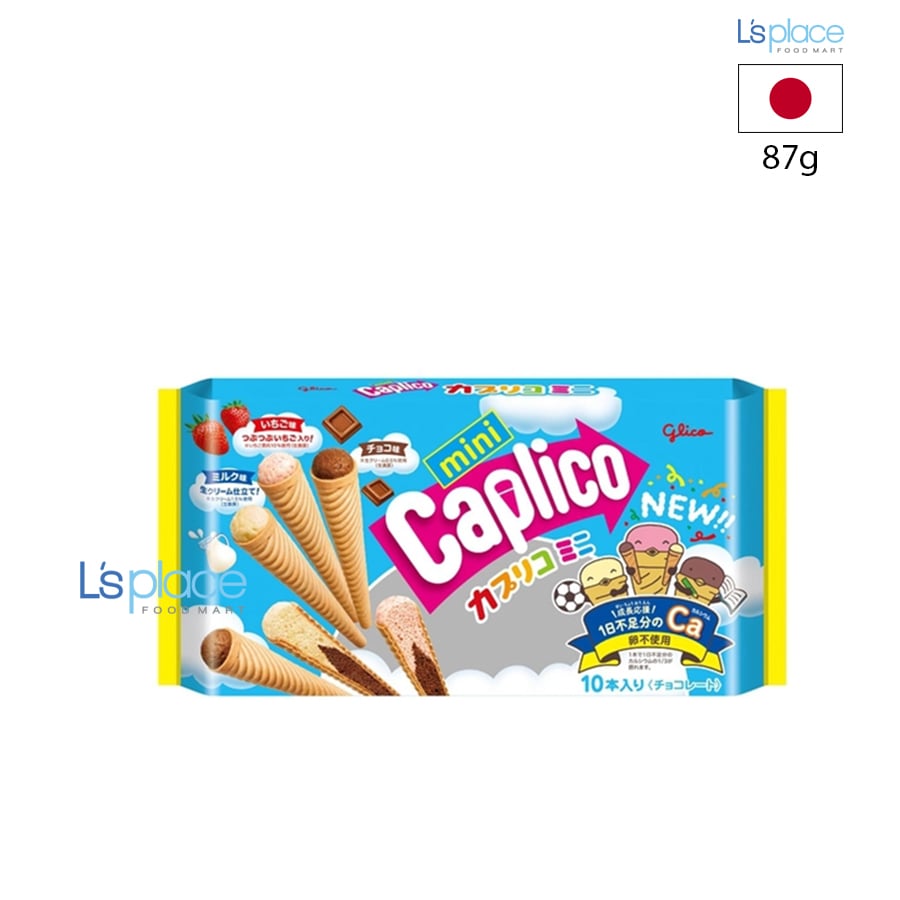 Caplico Mini là dòng bánh kem ốc quế nổi tiếng của Glico, mô phỏng hình dáng kem ốc quế nhưng ở dạng bánh snack tiện lợi. Phần kem xốp mịn kết hợp cùng lớp vỏ ốc quế giòn nhẹ, tạo cảm giác vui miệng khi thưởng thức. Hộp mini gồm 3 hương vị quen thuộc: socola, dâu tây và sữa, phù hợp cho cả trẻ em và người lớn.
