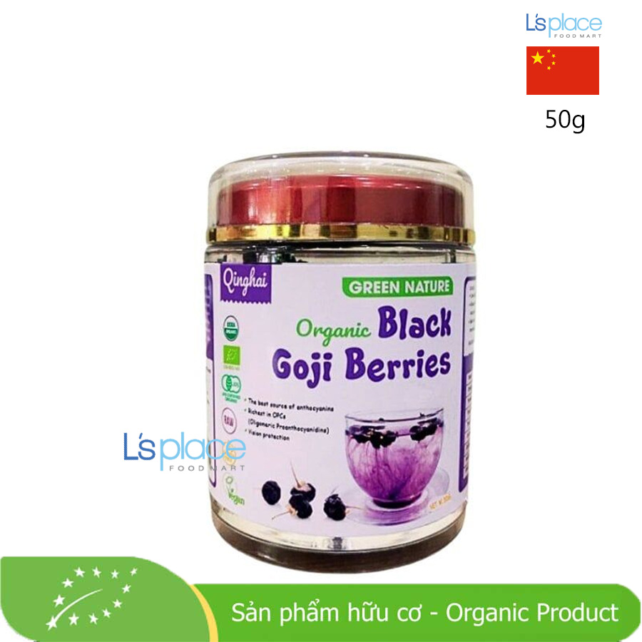 -Green Nature là thương hiệu cung cấp các sản phẩm thực phẩm hữu cơ, siêu thực phẩm (superfood), và các sản phẩm tự nhiên khác, thường tập trung vào chất lượng, nguồn gốc nguyên liệu rõ ràng và các chứng nhận hữu cơ quốc tế. Sản phẩm Hắc Kỷ Tử của Green Nature thường được chứng nhận hữu cơ bởi các tổ chức uy tín như USDA Organic (Bộ Nông nghiệp Hoa Kỳ), EU Organic (Liên minh Châu Âu) và JAS Organic (Nhật Bản), đảm bảo quá trình canh tác, chế biến và đóng gói tuân thủ nghiêm ngặt các tiêu chuẩn hữu cơ quốc tế. Xuất xứ nguyên liệu thường là Thanh Hải, Tây Tạng (Qinghai), Trung Quốc. Vùng Thanh Hải nổi tiếng là nơi trồng hắc kỷ tử có chất lượng tốt nhất với hàm lượng dinh dưỡng cao, đặc biệt là Anthocyanin, do môi trường phát triển khắc nghiệt của cây hắc kỷ tử hoang dã.Thành phần: