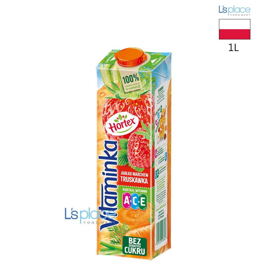 - Hortex là một trong những thương hiệu thực phẩm và đồ uống hàng đầu tại Ba Lan, nổi tiếng với các sản phẩm có nguồn gốc từ trái cây tự nhiên. Dòng Vitaminka của họ được thiết kế đặc biệt để cung cấp các vitamin thiết yếu, phù hợp cho cả trẻ em và người lớn. Hortex chú trọng vào việc giữ nguyên hương vị tự nhiên và giá trị dinh dưỡng của trái cây. Các sản phẩm dòng Vitaminka thường không chứa chất bảo quản và được bổ sung thêm các loại vitamin quan trọng như A, C, E.