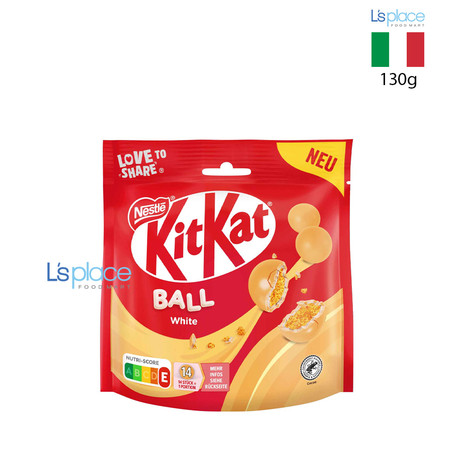 KitKat Balls White là socola dạng viên với lớp vỏ socola trắng mịn bao bọc phần bánh wafer giòn xốp đặc trưng của KitKat. Sản phẩm mang đến trải nghiệm mới lạ so với thanh KitKat truyền thống, vị ngọt dịu, dễ ăn và phù hợp để thưởng thức từng viên nhỏ. Thiết kế dạng viên tiện lợi cho việc chia sẻ hoặc dùng làm món ăn vặt hằng ngày.