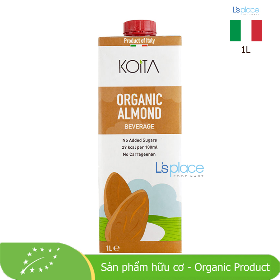 Sữa hạnh nhân hữu cơ Koita được làm từ hạt hạnh nhân hữu cơ nhập khẩu từ Ý (khoảng 3–3.5%), kết hợp cùng tinh bột gạo hữu cơ và dầu hướng dương, tạo nên kết cấu mịn mượt và vị hạnh nhân thanh nhẹ tự nhiên. Sản phẩm không đường, không chất bảo quản, không lactose—phù hợp với người ăn chay, người kiểm soát đường và theo lối sống lành mạnh.