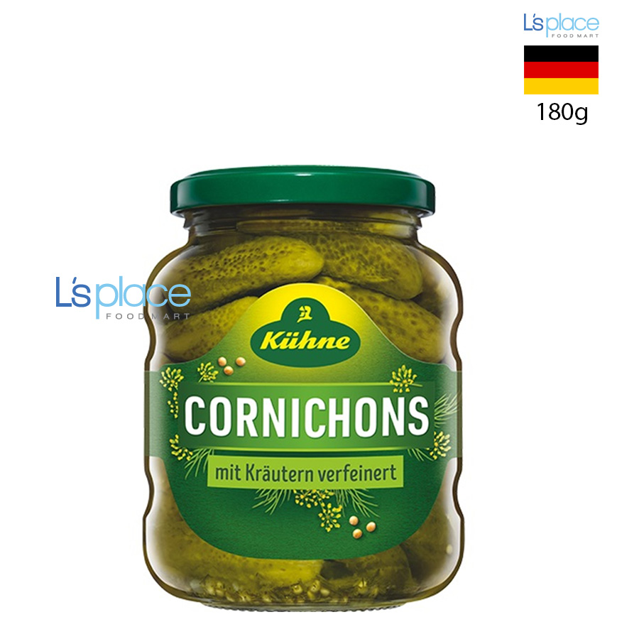 Dưa leo baby muối Kuhne với thảo mộc là món ăn kèm truyền thống mang đậm hương vị châu Âu. Những trái dưa nhỏ giòn tan được ngâm cùng giấm, mù tạt và hỗn hợp thảo mộc đặc trưng như thì là, rau mùi, tỏi… tạo nên hương vị đậm đà và dễ ăn.