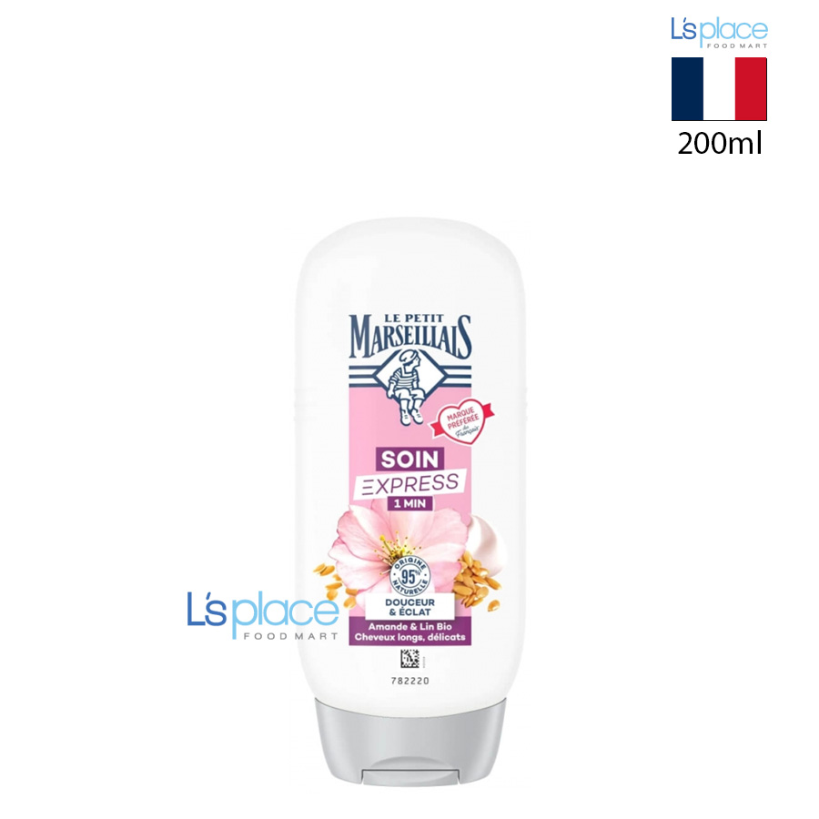 Le Petit Marseillais Soin Express 1 Min Douceur & Éclat là kem ủ tóc dưỡng nhanh trong 1 phút, được thiết kế đặc biệt dành cho tóc dài và mảnh, dễ hư tổn. Công thức chứa dầu hạnh nhân ngọt – nổi tiếng với khả năng làm mềm và nuôi dưỡng tóc – cùng hạt lanh giàu dưỡng chất giúp cấp ẩm, làm mượt và bảo vệ sợi tóc. Sản phẩm giúp gỡ rối dễ dàng, dưỡng ẩm và bảo vệ tóc từ gốc đến ngọn, mang lại mái tóc mềm mại, óng ả, nhẹ nhàng và đầy sức sống sau mỗi lần sử dụng.
