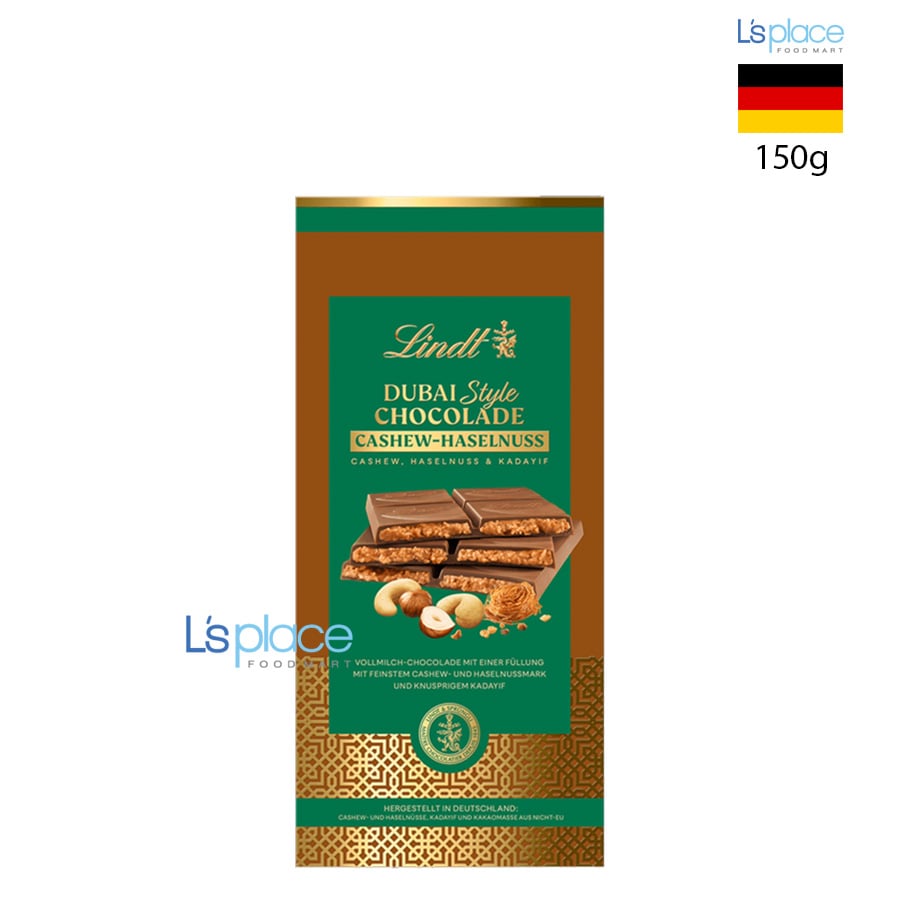 - Lindt & Sprüngli là biểu tượng của sự sang trọng trong thế giới socola với lịch sử từ năm 1845. Thương hiệu đến từ Thụy Sĩ này nổi tiếng toàn cầu nhờ quy trình sản xuất khắt khe và công nghệ "Conching" (nhào trộn kỹ) giúp socola đạt độ mịn mượt tuyệt đối. Dòng sản phẩm "Dubai" là bước đi bắt kịp xu hướng hiện đại, kết hợp giữa truyền thống Châu Âu và hương vị đậm chất Trung Đông.Thành phần: