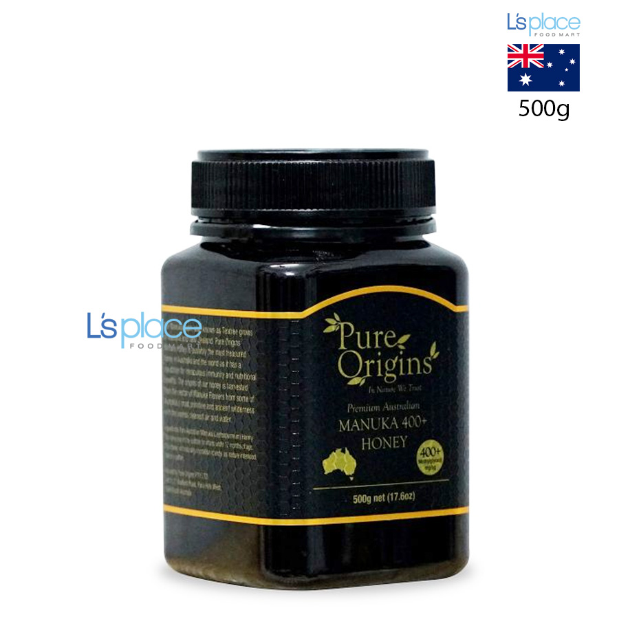 Pure Origin Mật ong Manuka 400+ là dòng mật ong cao cấp được thu hoạch từ hoa Manuka tại Úc. Sản phẩm có màu hổ phách sậm, kết cấu sánh mịn và hương vị đậm đà đặc trưng.