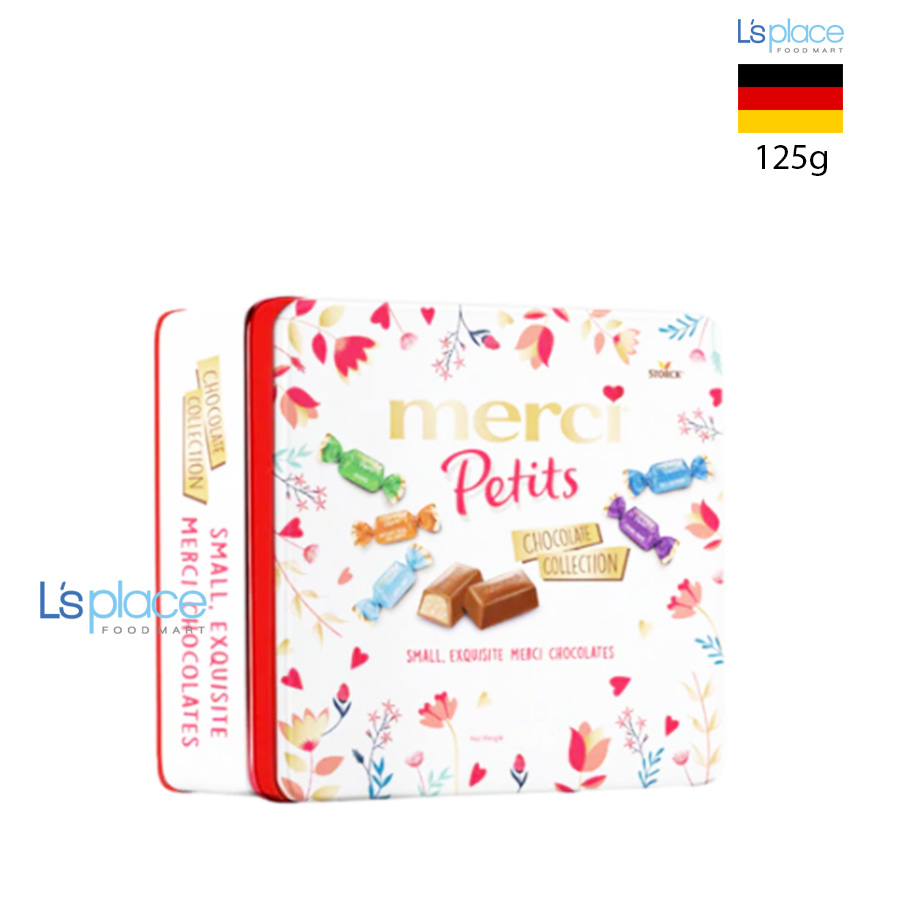 - Merci là thương hiệu socola nổi tiếng, ra đời từ năm 1965 tại Đức, nổi bật với thông điệp "Lời cảm ơn chân thành từ trái tim sẽ chạm đến trái tim". Merci Petits là dòng sản phẩm socola mini (kích thước nhỏ gọn, vừa miệng), được tuyển chọn từ những công thức và hương vị phổ biến nhất của Merci. Chocolate Collection là bộ sưu tập các hương vị socola hỗn hợp.Thành phần: