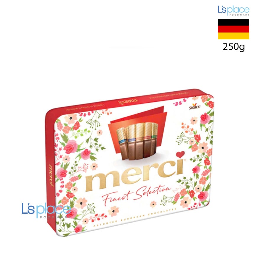 - "Merci" trong tiếng Pháp có nghĩa là "Cảm ơn". Thương hiệu mang thông điệp "Lời cảm ơn chân thành từ trái tim sẽ chạm đến trái tim", được xem là món quà ý nghĩa để bày tỏ lòng biết ơn và tình cảm. Socola Merci Finest Selection là bộ sưu tập các loại socola hảo hạng được làm từ bột cacao chất lượng cao và công thức bí truyền. Hộp socola thường chứa nhiều thanh nhỏ được bọc riêng lẻ với nhiều hương vị khác nhau.Thành phần: