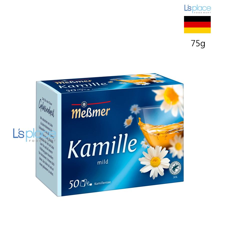 - Trà Messmer Kamille được làm từ 100% hoa cúc khô nguyên chất. "Kamille" là tên tiếng Đức của hoa cúc La Mã (Chamomile), một loài hoa cúc nổi tiếng với các đặc tính thư giãn và chữa bệnh.