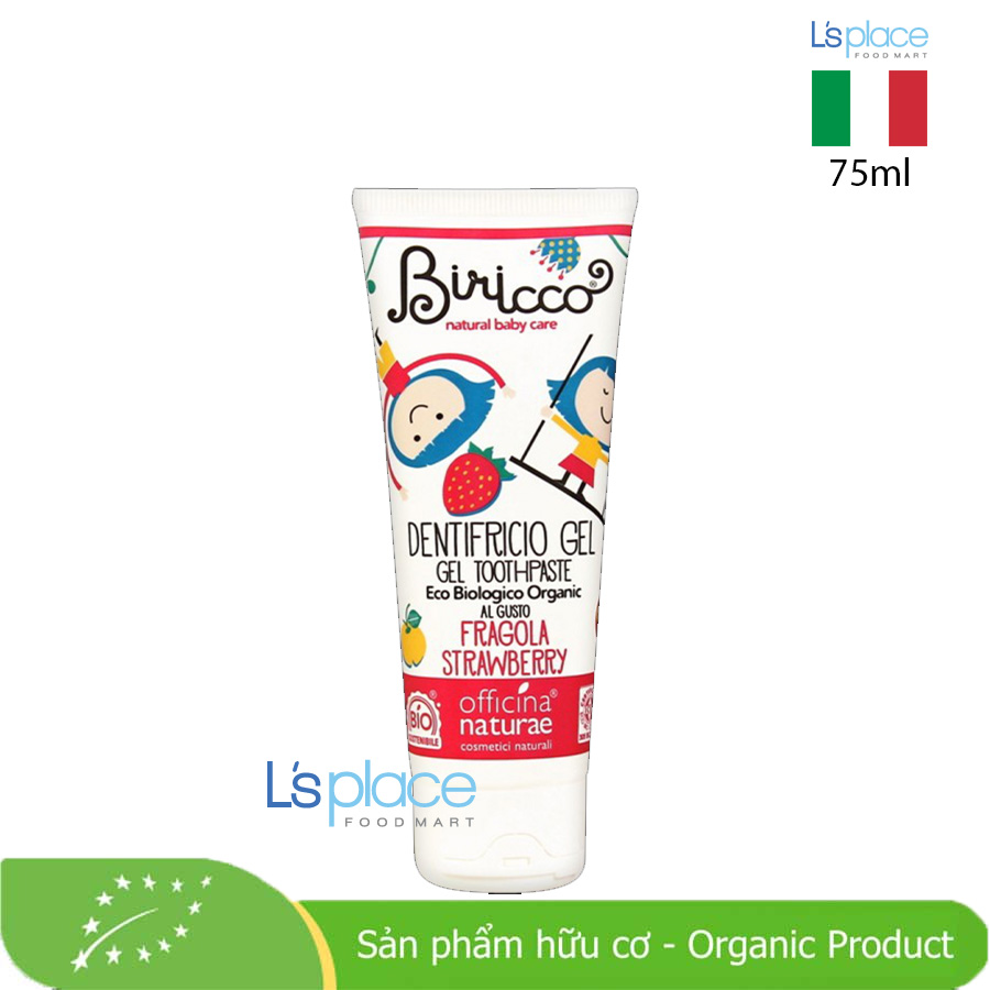 Kem đánh răng Officina Naturae Biricco Fragola Strawberry Bio được làm từ các thành phần hữu cơ an toàn cho bé, kể cả khi nuốt phải. Các thành phần chính bao gồm: