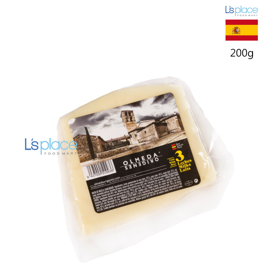 Olmeda Orígenes 3 Milks Semi Cured Cheese là loại phomai bán cứng đặc biệt, được làm từ sự kết hợp tinh tế của ba loại sữa: bò, dê và cừu. Nhờ sự hòa quyện này, phomai mang hương vị cân bằng, vừa béo ngậy, vừa thanh nhẹ và có chiều sâu. Thời gian ủ bán cứng giúp phomai có kết cấu dẻo chắc nhưng vẫn mềm mịn, phù hợp để thưởng thức riêng hoặc kết hợp trong nhiều món ăn Địa Trung Hải.