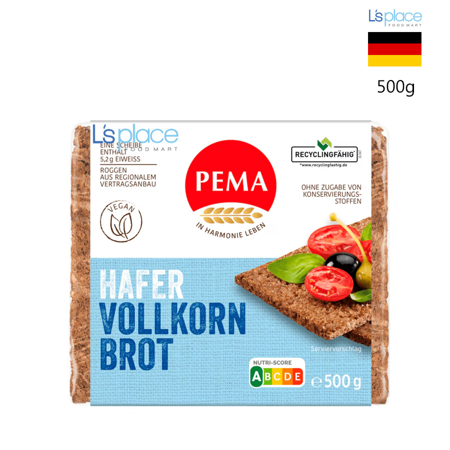 Pema Fitness Brot được sản xuất tại Đức, là loại bánh mì nguyên cám với thành phần chính gồm lúa mạch đen nguyên cám, yến mạch nguyên hạt và men chua tự nhiên. Bánh có lượng calo và carbohydrate vừa phải, giàu chất xơ và đạm thực vật, thích hợp cho người ăn kiêng, chế độ dinh dưỡng lành mạnh hoặc cần kiểm soát cân nặng. Sản phẩm thuần chay, không chứa lactose, không chất bảo quản.