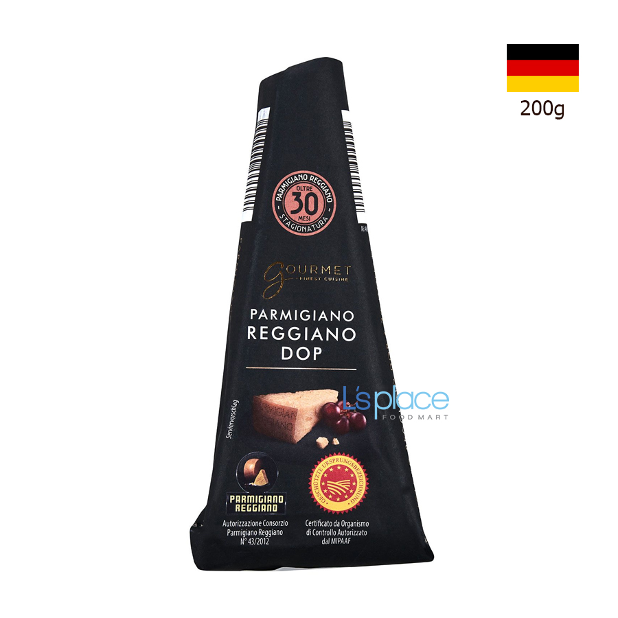 - Parmigiano Reggiano DOP được mệnh danh là "Vua của các loại phô mai" (The King of Cheeses). Tên gọi "Gourmet" thường được dùng để chỉ các dòng tuyển chọn cao cấp, có thời gian ủ dài và chất lượng thượng hạng. Chứng nhận DOP (Denominazione d'Origine Protetta): Đây là chứng nhận bảo hộ nguồn gốc sản phẩm nghiêm ngặt của Liên minh Châu Âu. Chỉ những khối phô mai được sản xuất tại đúng vùng địa lý này, theo quy trình truyền thống hơn 1.000 năm mới được gọi tên là Parmigiano Reggiano. Phô mai có kết cấu cứng, dạng hạt (gritty), giòn nhẹ với các tinh thể tyrosine (đốm trắng nhỏ) hình thành trong quá trình ủ, mang lại vị umami đậm đà.Thành phần: