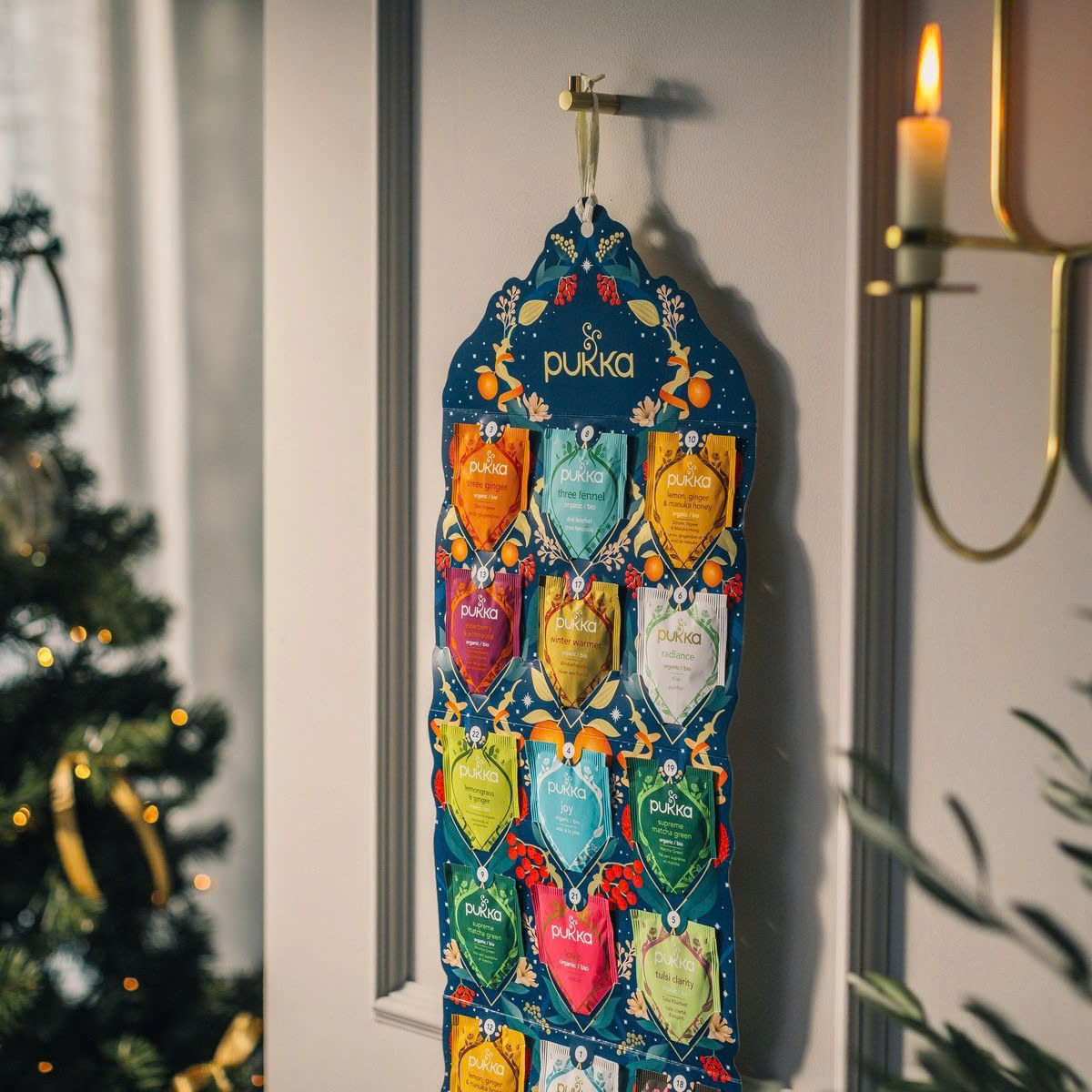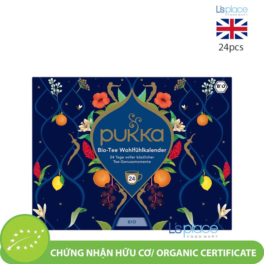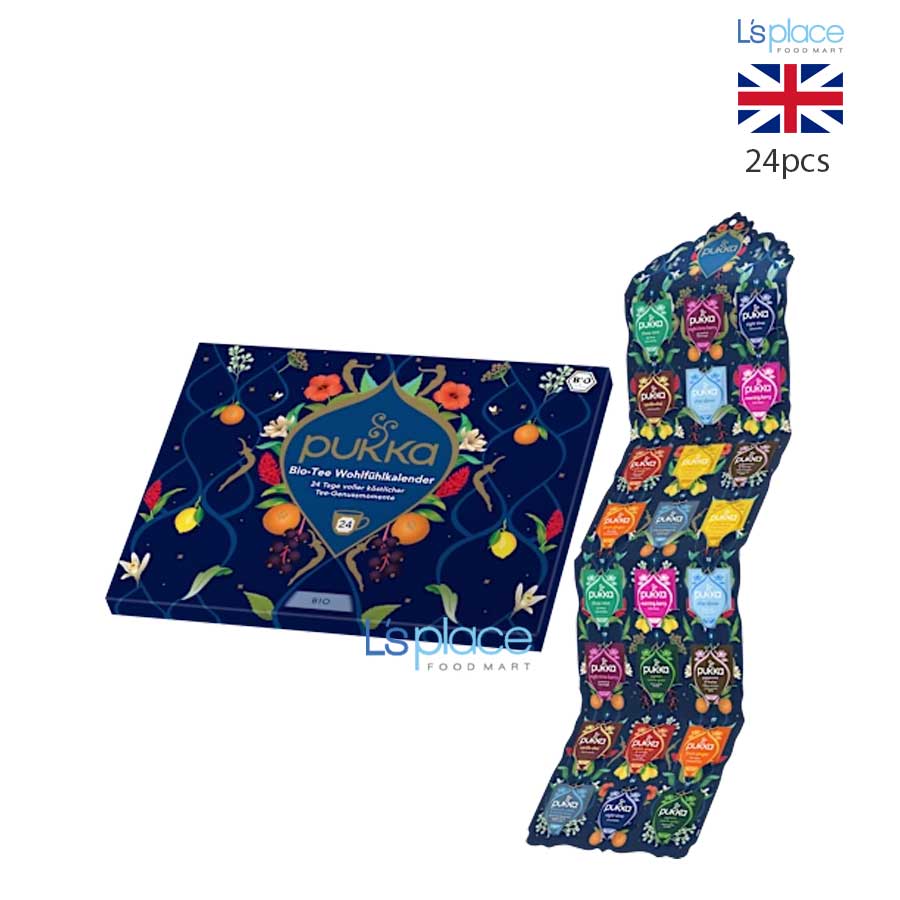 Pukka Organic Tea Advent Calendar là hộp trà lịch Giáng sinh độc đáo đến từ thương hiệu trà hữu cơ nổi tiếng của Anh – Pukka. Bên trong gồm 24 túi trà được tuyển chọn từ các loại thảo mộc hữu cơ nguyên chất như cam quýt, gừng, bạc hà, hoa cúc, nghệ và nhiều loại thảo dược tự nhiên khác.