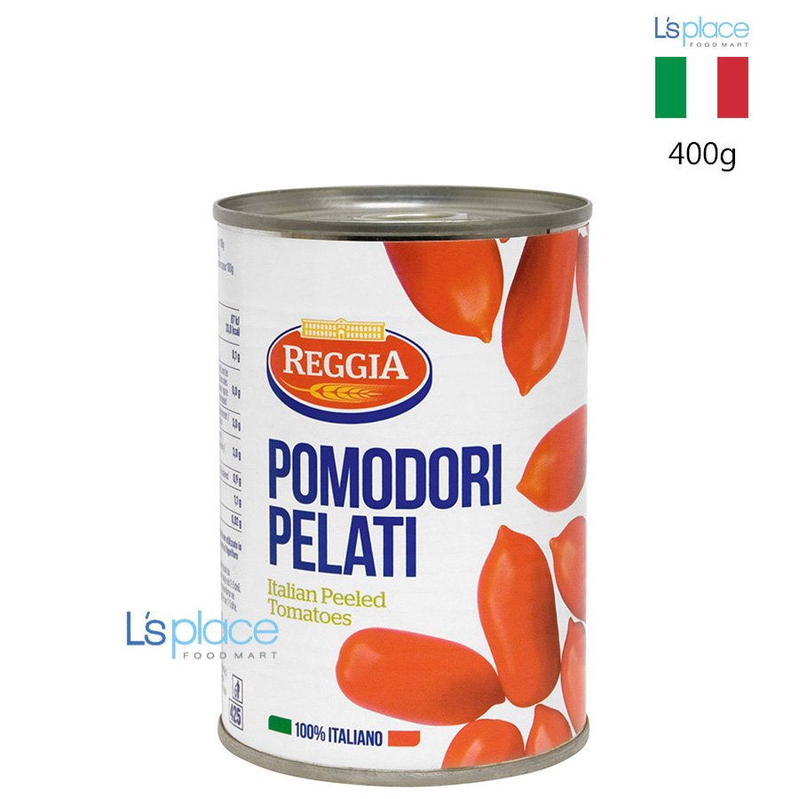Reggia Pelati là cà chua nguyên quả đã được gọt vỏ, được chọn lọc từ những quả cà chua Ý chín mọng, thu hoạch vào mùa cao điểm và chế biến trong vòng vài giờ để giữ nguyên hương vị tươi ngon. Cà chua có màu đỏ đậm, kết cấu nguyên vẹn, mềm mọng, thích hợp cho nhiều công thức nấu ăn truyền thống từ Âu đến Á.