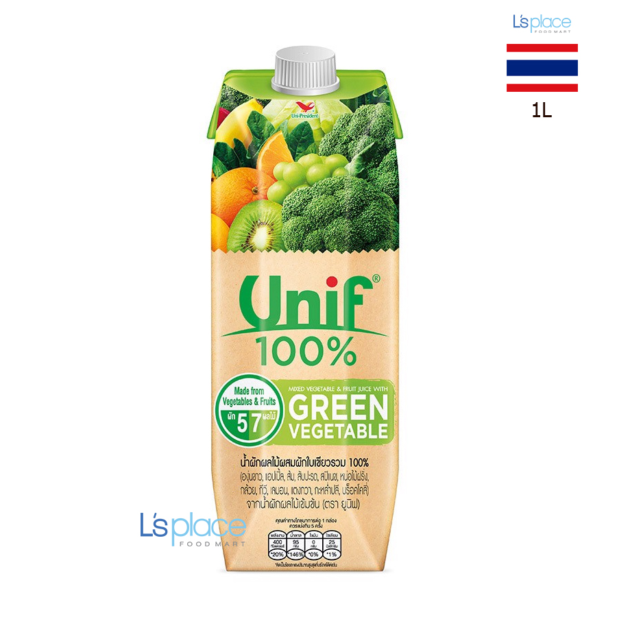- UNIF là thương hiệu đồ uống, nổi tiếng với các sản phẩm nước ép trái cây và rau củ, nhấn mạnh vào nguồn gốc tự nhiên, cung cấp vitamin và các dưỡng chất cần thiết cho cơ thể. Sản phẩm Nước Ép Rau Củ Quả UNIF Green Vegetable là sự kết hợp độc đáo giữa trái cây và rau củ quả xanh.Thành phần: