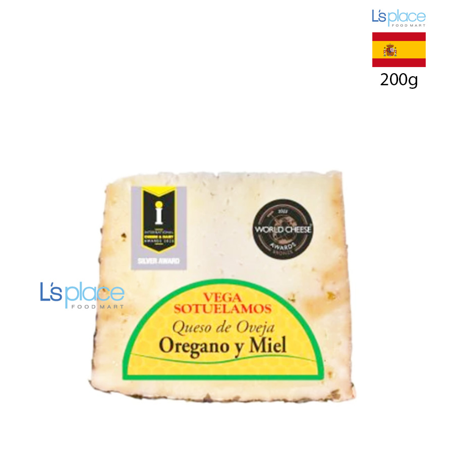 Vega Sotuélamo Sheep Cheese with Honey and Oregano là phô mai làm từ sữa cừu, có độ béo 55%, nổi bật với hương vị đậm đà tự nhiên. Sự kết hợp giữa vị béo đặc trưng của phô mai cừu, hương oregano thơm dịu và vị ngọt nhẹ từ mật ong mang đến trải nghiệm vị giác hài hòa, tinh tế, phù hợp cho những ai yêu thích phô mai phong cách Địa Trung Hải.