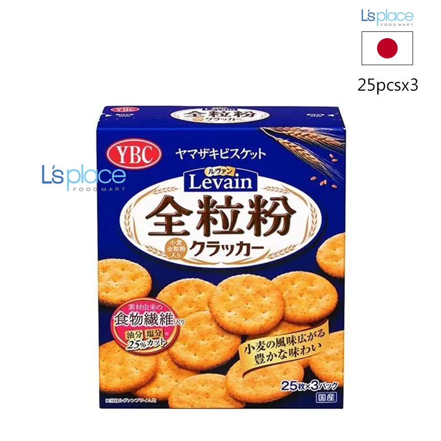 - Bánh quy YBC Levain Whole Grain Crackers là một sản phẩm nổi tiếng của thương hiệu bánh kẹo Yamazaki Biscuits (YBC), Nhật Bản. Đây là loại bánh cracker làm từ ngũ cốc nguyên hạt, được ưa chuộng bởi hương vị thơm ngon và những lợi ích sức khỏe mà nó mang lại. Yamazaki Biscuits (YBC) là một công ty bánh kẹo lâu đời và uy tín tại Nhật Bản, nổi tiếng với các sản phẩm như sô cô la, bánh quy và bánh cracker. Bánh YBC Levain Whole Grain Crackers được sản xuất với thành phần bột mì nguyên cám (whole wheat flour). Điều này tạo nên một hương vị đặc trưng của ngũ cốc, mặn nhẹ, thơm bùi và đậm vị lúa mì. Bánh có kết cấu giòn xốp, nhẹ nhàng, rất dễ ăn. YBC Levain Whole Grain Crackers được phát triển với ý thức về sức khỏe người tiêu dùng. Bánh được giảm hàm lượng dầu và muối so với các loại bánh cracker thông thường, đồng thời cung cấp thêm chất xơ, sắt và vitamin từ ngũ cốc nguyên hạt.