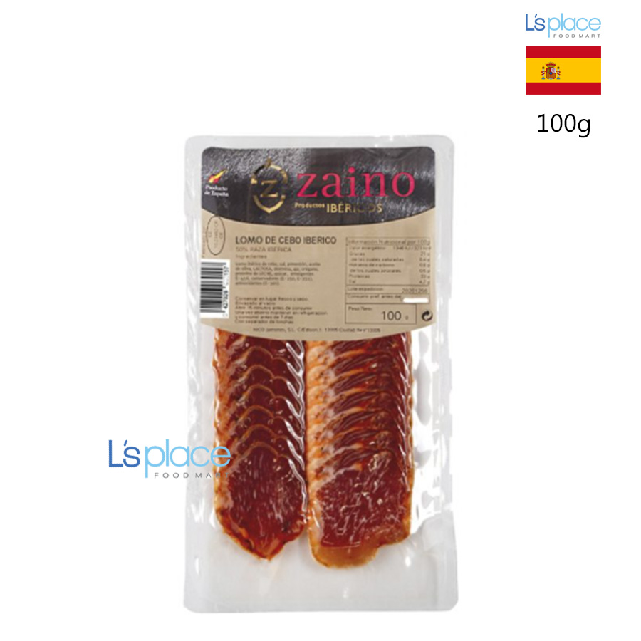Mô tả sản phẩm: Zaino Iberico Cebo Lomo được chế biến từ phần thăn heo Iberico cao cấp, ướp muối và gia vị rồi ủ chín tự nhiên. Thịt có hương vị đậm đà, thơm béo, xen lẫn chút ngọt tự nhiên đặc trưng của giống heo Iberico. Lát cắt mỏng, mềm mại, là lựa chọn hoàn hảo cho các bữa tiệc hoặc bữa ăn sang trọng.